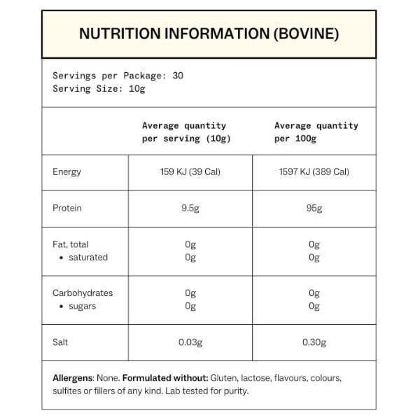 Collagen Peptides Bovine: Ultra-absorbable pure collagen peptides. 100% pure, grass-fed, hormone and antibiotic free.